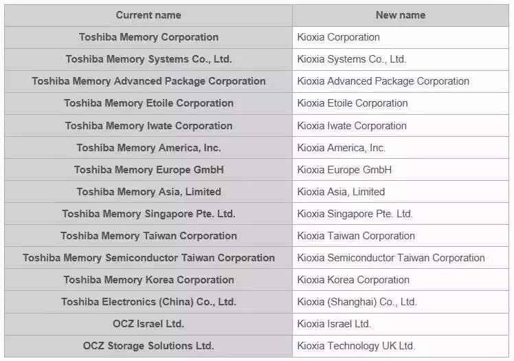 東芝存儲器 (TMC)昨日(18日)宣布,將于2019年10月1日正式更名為Kioxia公司。全球所有東芝存儲器公司都會采用新的品牌名稱Kioxia,基本上同一天生效。Kioxia,由日語單詞kioku (意為 記憶
