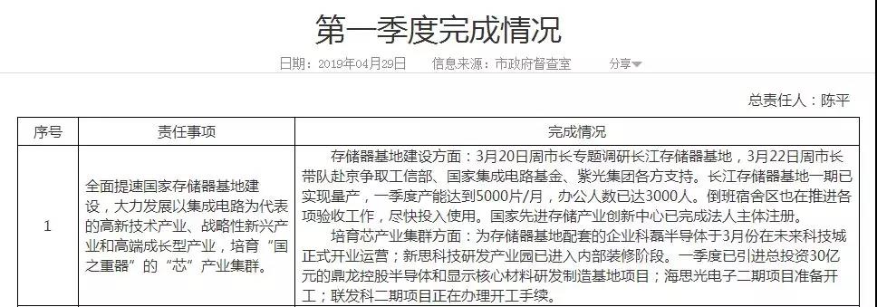 武漢市政府督查室透露,3月20日,武漢市長(zhǎng)周先旺專題調(diào)研長(zhǎng)江存儲(chǔ)器基地,3月22日周先旺市長(zhǎng)帶隊(duì)赴京爭(zhēng)取工信部、國(guó)家集成電路基金、紫光集團(tuán)各方支持。