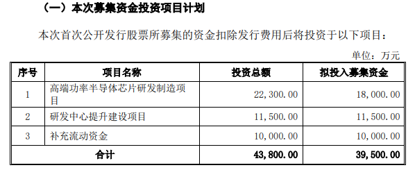 這次安芯電子擬首次公開(kāi)發(fā)行股票不超過(guò)1013.90萬(wàn)股,募集資金3.95億元,所募集資金扣除發(fā)行費(fèi)用后將投資于高端功率半導(dǎo)體芯片研發(fā)制造項(xiàng)目、研發(fā)中心提升建設(shè)項(xiàng)目、補(bǔ)充流動(dòng)資金。