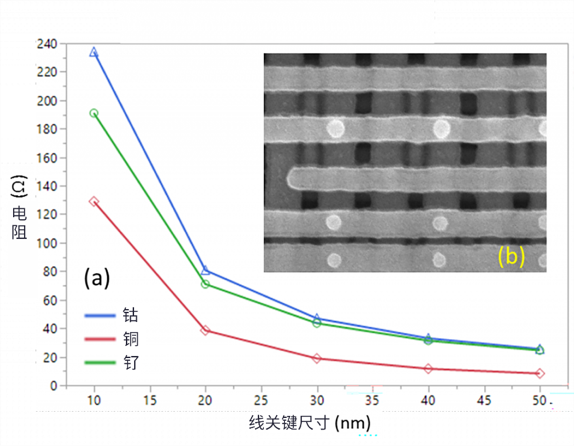 3. 在所有線關(guān)鍵尺寸和線邊緣粗糙度條件下,應(yīng)選擇特定的金屬來獲得最低的絕對電阻值。