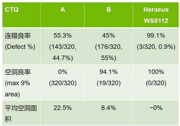 •錫膏是賀利氏WS5115 T7 以及競(jìng)品A和B。