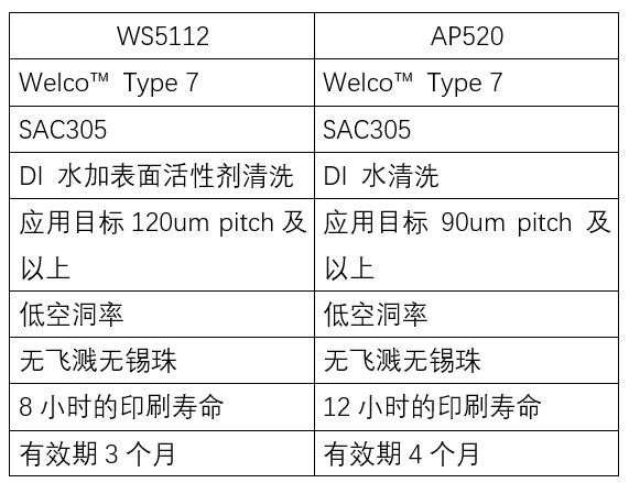 錫膏:兩種7號(hào)粉錫膏WS5112 T7和 AP520 T7
