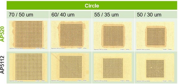 •最小的開孔是70um,