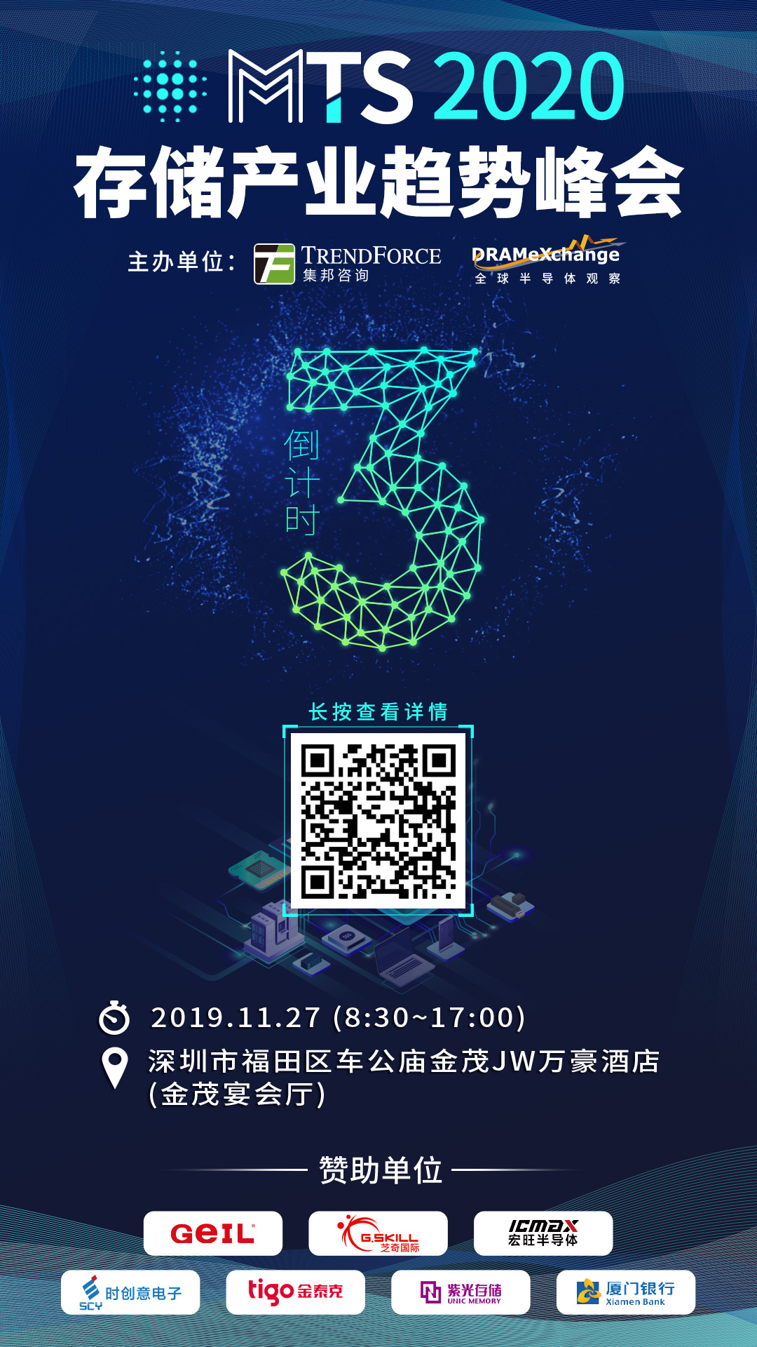 為了更快更好地推動(dòng)存儲(chǔ)市場(chǎng)發(fā)展,增強(qiáng)業(yè)界對(duì)2020年存儲(chǔ)產(chǎn)業(yè)的深入了解,促進(jìn)產(chǎn)業(yè)上下游交流與互動(dòng),由集邦咨詢旗下DRAMeXchange主辦的“2020存儲(chǔ)產(chǎn)業(yè)趨勢(shì)峰會(huì)”將于2019年11月27日在深圳舉辦。
