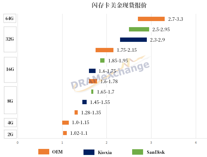 SK Hynix SLC 2G部分有少量詢單,買方目標價格仍落在USD1.1-1.2之間,而供應(yīng)端為求接單亦主動調(diào)降報價,從USD 1.36下修至USD1.27,不過雙方在價格上仍有差距,最終未能成交,其余顆粒并未有明顯買單詢價。