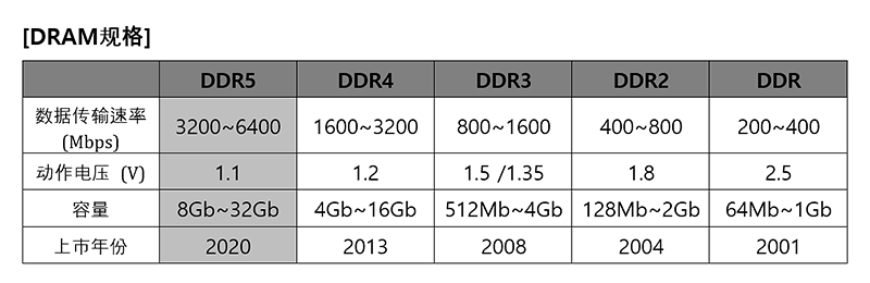 SK海力士推出的DDR5 DRAM的數(shù)據(jù)傳輸速率高達(dá)4800 ~ 5600Mbps,其速率相較前一代DDR4最多提升了1.8倍。5600Mbps的傳輸速率意味著能夠在1秒內(nèi)傳輸九部全高清(Full-HD, FHD)電影。不僅如此,該產(chǎn)品的動作電壓由前一代的1.2V降到了1.1V,成功減少了20%的功耗。