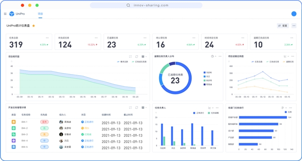 (上圖為UniPro項目管理軟件統(tǒng)計儀表盤功能)