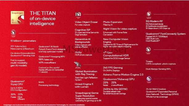 半導(dǎo)體世界10月23日消息,高通即將發(fā)布旗下最新的頂級移動平臺——驍龍 8 Gen3。根據(jù)泄露的內(nèi)部文件,這一新處理器將為下一代旗艦智能手機(jī)帶來生成式人工智能功能,堪稱市場上最強(qiáng)大和功能最齊全的移動平臺之一。