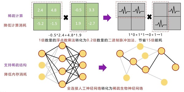在人工智能領(lǐng)域,目前大模型正當(dāng)其時(shí),但是能耗和算力制約著大模型的更高維度的發(fā)展,如何低能耗地構(gòu)建下一代大模型成為關(guān)鍵。類腦智能通過模擬生物大腦的工作方式,為實(shí)現(xiàn)低功耗、低成本且能夠?qū)崟r(shí)在線學(xué)習(xí)的人工智能系統(tǒng)提供了一種革命性的方案。脈沖神經(jīng)網(wǎng)絡(luò)作為類腦智能的核心計(jì)算架構(gòu),其工作原理更接近生物神經(jīng)元的信號(hào)傳遞,以脈沖形式的信號(hào)和時(shí)間序列信息進(jìn)行通訊,支持異步且稀疏的事件驅(qū)動(dòng)方式。然而,盡管脈沖神經(jīng)網(wǎng)絡(luò)在理論上具有顯著的低能耗優(yōu)勢,現(xiàn)有的實(shí)現(xiàn)框架往往無法充分利用其類腦稀疏計(jì)算的特性,使得在實(shí)際應(yīng)用中達(dá)到理想的能效比仍面臨挑戰(zhàn)。