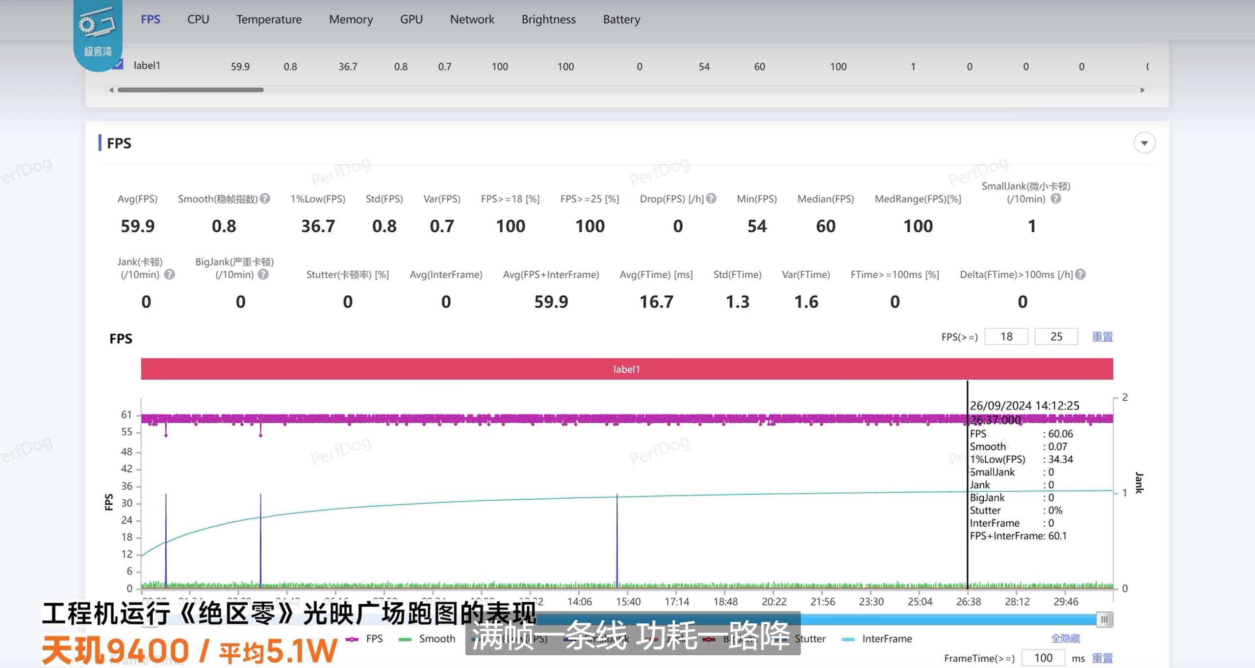 極客灣則測(cè)試了天璣9400在《絕區(qū)零》光映廣場(chǎng)跑圖的實(shí)際表現(xiàn),可以看到是滿幀一條線,功耗一路降。這款對(duì)于現(xiàn)有旗艦手機(jī)壓力山大的手機(jī)游戲,就這么被天璣9400水靈靈地用低功耗跑到了絲滑滿幀。