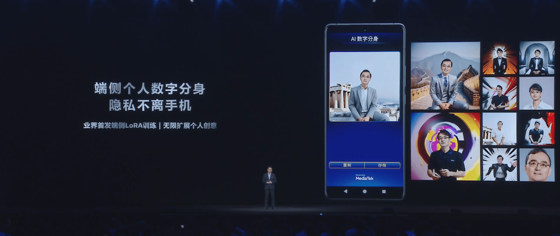 智慧的AI體驗,一定是個性化的服務(wù)?;趶姾返亩藗?cè)算力和生成式AI能力,天璣9400首發(fā)端側(cè)LoRA訓練,可以讓用戶利用個人資料在端側(cè)訓練和生成個性化內(nèi)容,并建立專屬于個人的AI數(shù)字分身。整個過程無需連網(wǎng),既保護了用戶隱私,又實現(xiàn)了AI的專屬個人化,無限地拓展創(chuàng)意。這是智能手機和應(yīng)用升級為智能體化的關(guān)鍵,在保護用戶隱私的前提下,智能體化的手機會基于個人數(shù)據(jù)越來越懂用戶的偏好、習慣,甚至在未來會理解用戶的情感和行動趨勢。