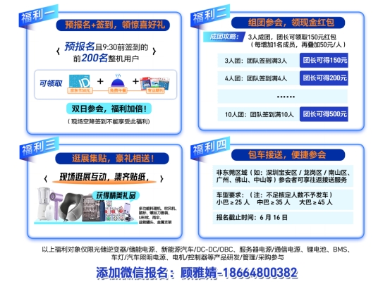 前200名整機工程師報名并現(xiàn)場簽到,即可獲得京東卡、午餐券以及技術(shù)資料禮包;3人以上組團參會,還可享受專屬紅包激勵。