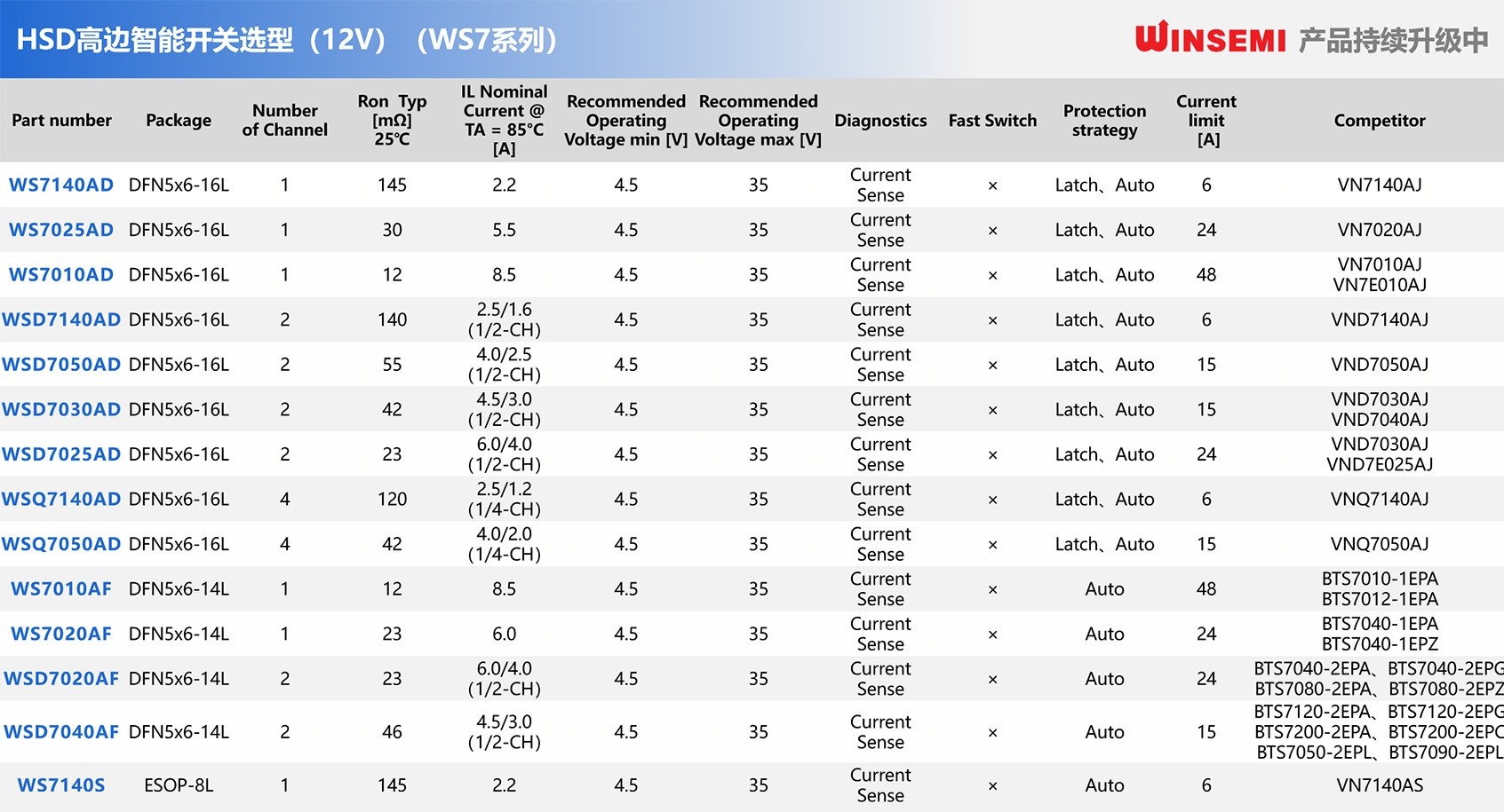 表 | 穩(wěn)先微高邊開(kāi)關(guān)產(chǎn)品選型