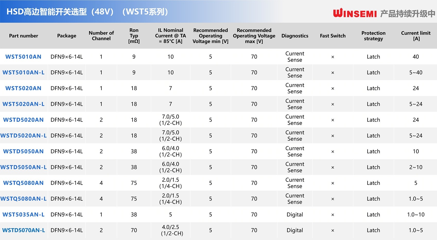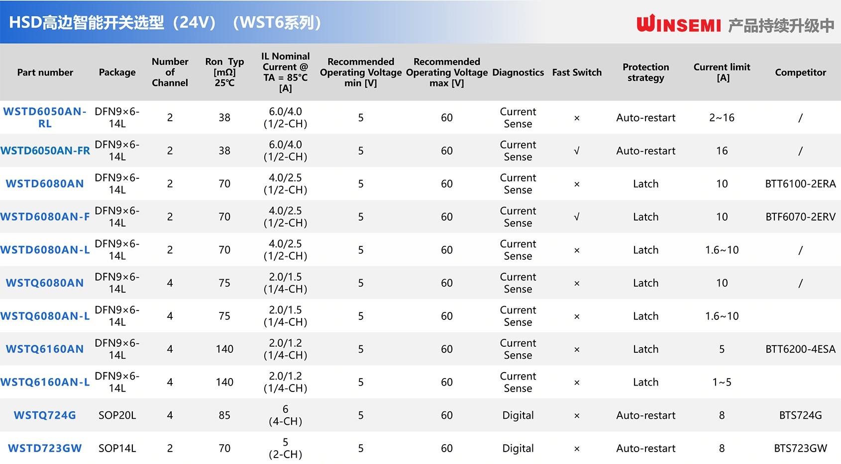 隨著汽車(chē)行業(yè)向智能化、電動(dòng)化和網(wǎng)聯(lián)化加速發(fā)展,傳統(tǒng)12V電氣系統(tǒng)因輸出功率有限,難以滿足商用車(chē)、工業(yè)設(shè)備、機(jī)器人及飛機(jī)等多樣化應(yīng)用場(chǎng)景對(duì)功率的日益增長(zhǎng)需求。當(dāng)下,行業(yè)已逐步邁向24V乃至48V系統(tǒng),以適配不斷演進(jìn)的技術(shù)要求與實(shí)際應(yīng)用需求。在此背景下,穩(wěn)先微電子有限公司重磅推出WST6系列和WST5系列智能高邊開(kāi)關(guān)芯片,專(zhuān)為24/48V電控平臺(tái)設(shè)計(jì),為客戶提供高性能、高可靠性的解決方案。