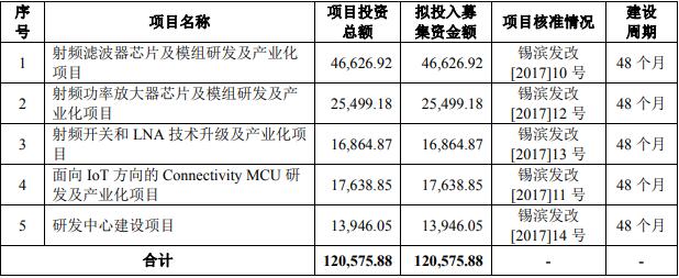 招股書顯示,卓勝微此次IPO擬募集資金約12億元,4.7億元募集資金擬投資于“射頻濾波器芯片及模組研發(fā)及產(chǎn)業(yè)化項(xiàng)目”、 2.5億元募集資金擬投資于“射頻功率放大器芯片及模組研發(fā)及產(chǎn)業(yè)化項(xiàng)目”、1.7億元募集資金擬投資于 “射頻開關(guān)和 LNA 技術(shù)升級及產(chǎn)業(yè)化項(xiàng)目”、 1.8億元募集資金擬投資于“面向 IoT 方向的 Connectivity MCU 研發(fā)及產(chǎn)業(yè)化項(xiàng)目”,1.4億元募集資金擬投資于“研發(fā)中心建設(shè)項(xiàng)目”。