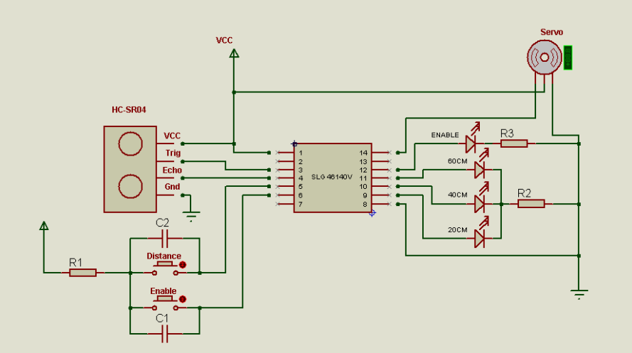 系統(tǒng)的所有控制功能,包括從超聲波傳感器接收信號(hào),和為伺服電機(jī)生成合適的信號(hào),都是通過單個(gè)小型Dialog GreenPAK CMIC實(shí)現(xiàn),它能有效地執(zhí)行各項(xiàng)功能。