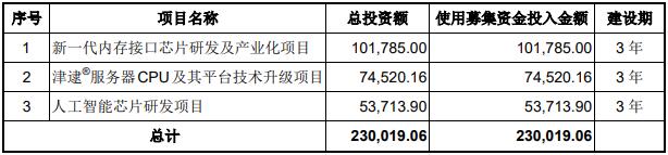 此外,瀾起科技還擬公開(kāi)發(fā)行不超過(guò)11,298.1389萬(wàn)股A股普通股股票,使用募集資金230,019.06萬(wàn)元用于與公司主營(yíng)業(yè)務(wù)相關(guān)的項(xiàng)目,包括新一代內(nèi)存接口芯片研發(fā)及產(chǎn)業(yè)化項(xiàng)目,津逮服務(wù)器CPU及其平臺(tái)技術(shù)升級(jí)項(xiàng)目,以及人工智能芯片研發(fā)項(xiàng)目。