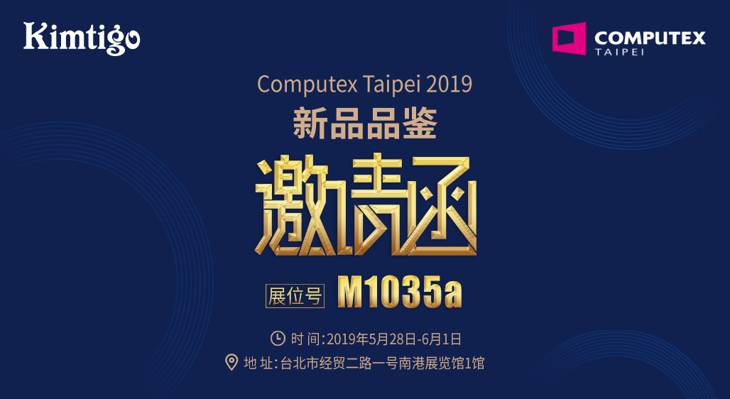 5月28日-6月1日,2019年臺北國際電腦展(COMPUTEX 2019)將于臺北南港展覽館1館開展。與眾多知名品牌參與本次盛會的深圳金泰克,攜全系列精品存儲方案與您同聚一堂。