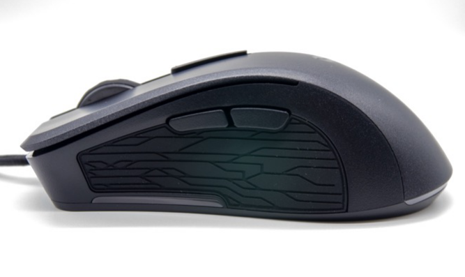 ▲滑鼠左側的兩個功能鍵和人體功學設計的止滑墊。