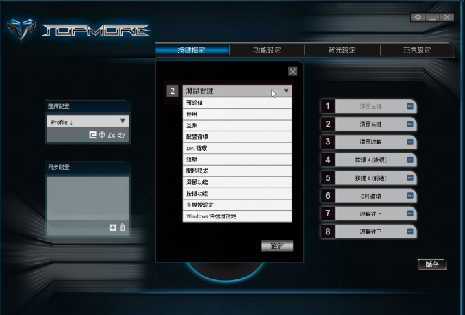 在滑鼠功能設定上,達墨也提供了強大且便利的設定軟體,方便使用者快速設定滑鼠的各項功能,從按鍵指定、背光、滑鼠解析度到巨集設定等等都能一應俱全。