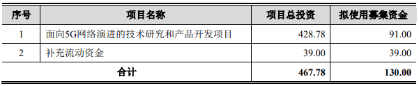 其中人民幣91億元擬用于面向5G網(wǎng)絡演進的技術研究和產(chǎn)品開發(fā)項目,另外39億元擬用于補充流動資金,本次非公開發(fā)行A股股票扣除發(fā)行費用后的募集資金凈額低于上述項目擬投入募集資金總額的部分將由公司自籌資金解決。