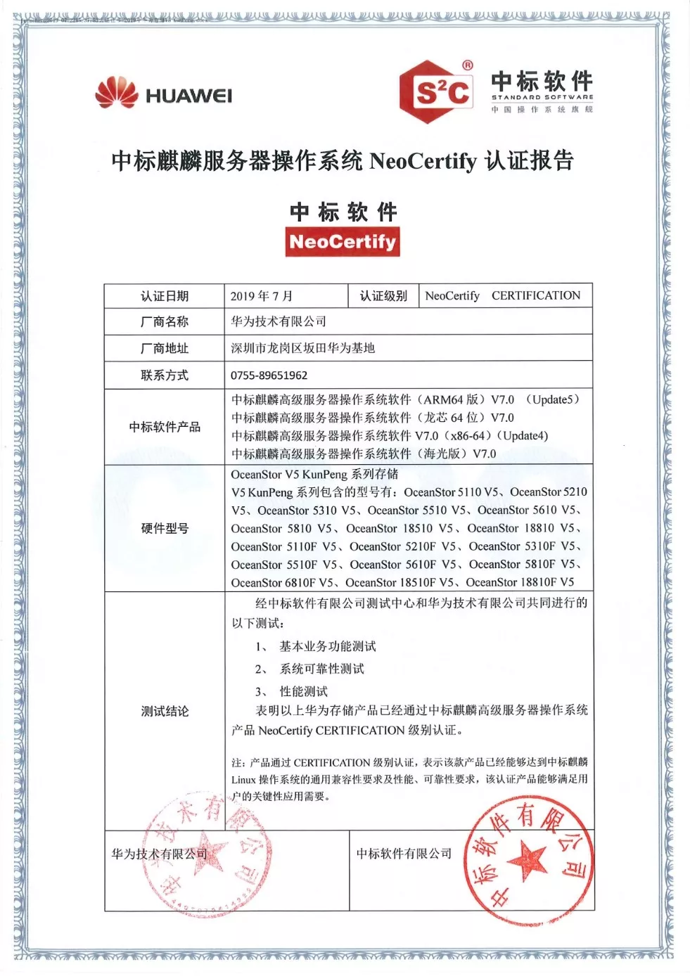 測試結(jié)果表明:華為鯤鵬生態(tài)下存儲領(lǐng)域的全系列29款產(chǎn)品與中標(biāo)麒麟高級服務(wù)器操作系統(tǒng)V7.0系列的ARM64版、龍芯64位版、海光版和X86-64版產(chǎn)品可以實現(xiàn)完全兼容并穩(wěn)定運行,能夠滿足用戶各類關(guān)鍵應(yīng)用的性能和可靠性要求。