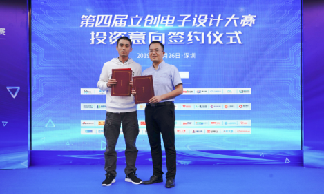 嘉立創(chuàng)投資執(zhí)行合伙人劉卓琛,還在現(xiàn)場與本屆大賽的一等獎(jiǎng)得主楊云杰簽署了投資意向書!