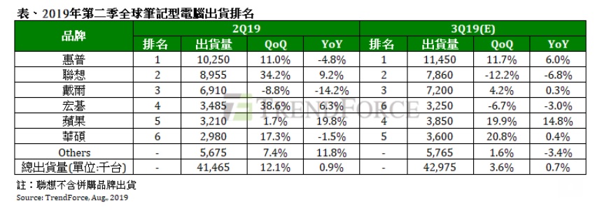 根據(jù)全球市場研究機構(gòu)TrendForce日前所發(fā)布2019年第2季全球筆記型電腦出貨量的最新報告指出,蘋果的筆電出貨量在第2季排名第5,出貨量為321萬臺,并且預(yù)計第3季還將以385萬臺的出貨量擠下宏碁,成為出貨量排名第4的品牌。因此,在臺積電能為蘋果Mac使用的處理器進行代工后,也將能在挹注營收。(來源:TechNews科技新報)
