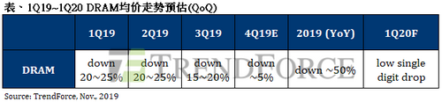 根據(jù)集邦咨詢半導(dǎo)體研究中心(DRAMeXchange)最新調(diào)查,第四季DRAM均價(jià)相較前一季仍小幅下跌,但跌幅已縮小至約5%。10月交易量與先前季度的首月相比明顯放大,顯示買方購(gòu)貨的意愿逐漸增強(qiáng)。一旦供給商的庫(kù)存降低,降價(jià)求售的必要性便大幅下降,有助于2020年DRAM價(jià)格的止穩(wěn)反彈。