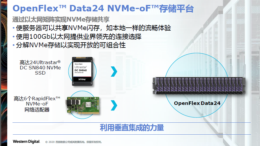 除了Ultrastar DC SN840 NVMe SSD,西部數(shù)據(jù)還帶來了其OpenFlex Data24 NVMe-oF存儲平臺及RapidFlex NVMe-oF控制器。