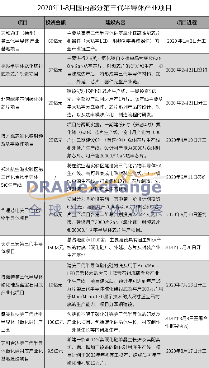 國際企業(yè)加碼布局,國內(nèi)第三代半導體產(chǎn)業(yè)發(fā)展亦風頭正盛,擴產(chǎn)、投資等如火如荼,從今年新開工以及新規(guī)劃的相關項目可見一斑。