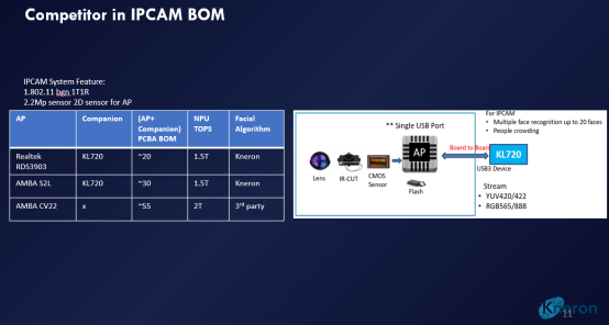 “當同類廠商還在推廣缺乏安全性的 2D 方案時,耐能已為更多的行業(yè)導入先進的 3D AI 技術。”耐能方面強調(diào)。而得益于其芯片的優(yōu)勢,如果將這顆應用到IPCAM中,在于競爭對手相比時,也擁有不少的優(yōu)勢。