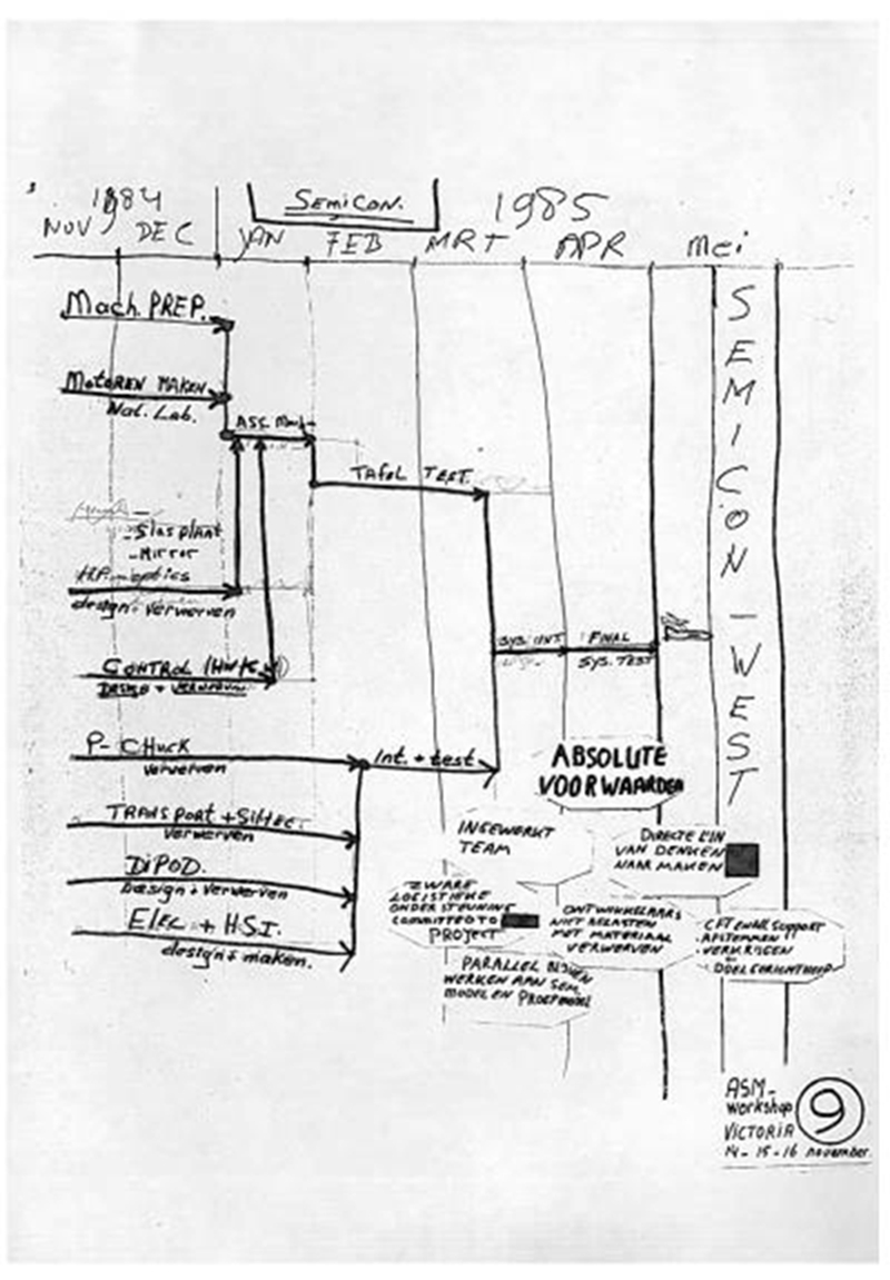 ASML于1985年SEMICONWest展會上展出的將PAS2000的機臺更換為電動機臺的路線圖