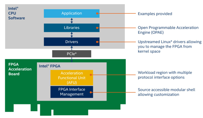 作為英特爾第二代FPGA平臺軟件,通過可拓展的硬件,以及可訪問的git源代碼庫的軟件框架,英特爾開放式FPGA開發(fā)堆棧讓軟硬件及應(yīng)用開發(fā)人員能更輕松地創(chuàng)建定制加速平臺與解決方案。