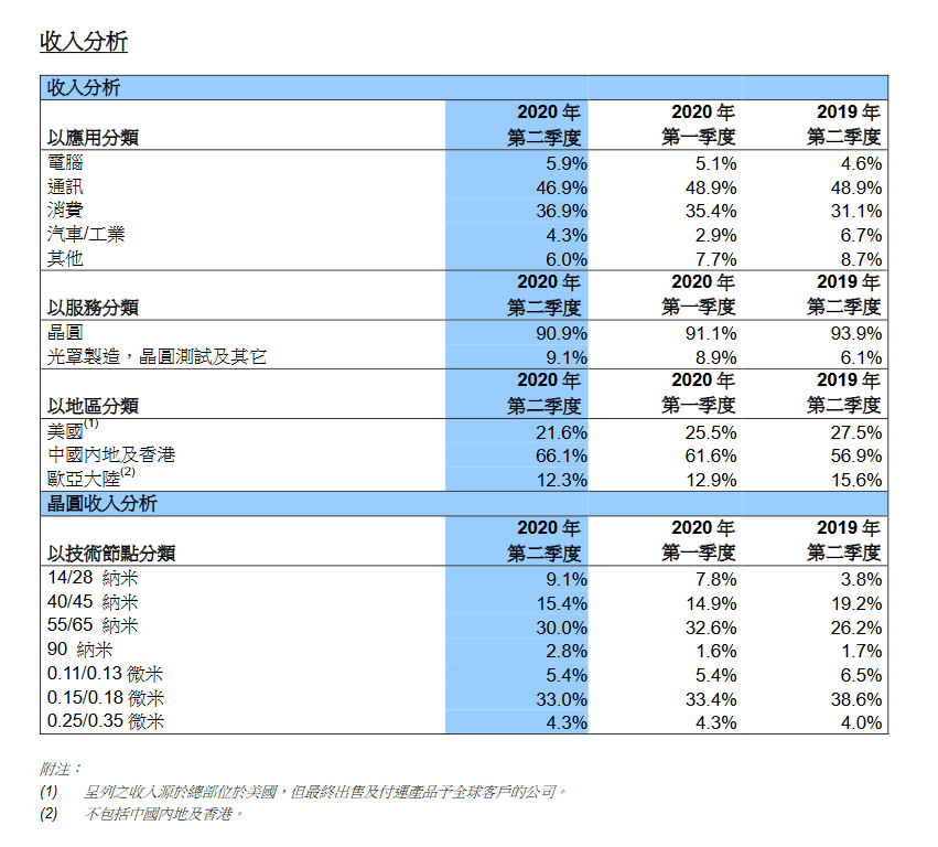 從收入結(jié)構(gòu)看,按服務(wù)類(lèi)型分,晶圓代工收入占比超八成;按照應(yīng)用類(lèi)型分,智能手機(jī)占比46.1%;按照技術(shù)節(jié)點(diǎn)分,14/28nm先進(jìn)制程節(jié)點(diǎn)收入占比不斷提升,環(huán)比增長(zhǎng)5.5個(gè)百分點(diǎn)至14.6%。