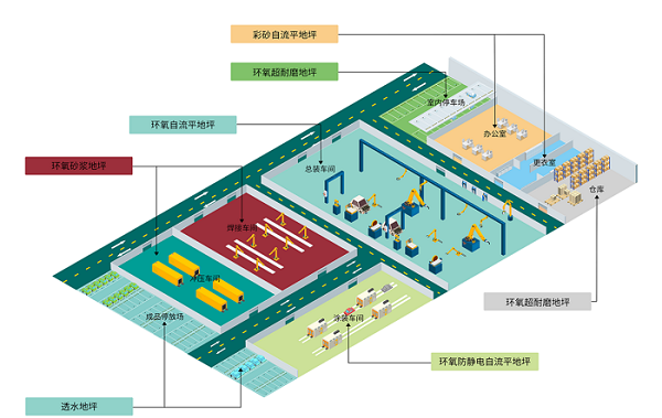 適用于新能源汽車整車制造多車間場(chǎng)景的地坪解決方案