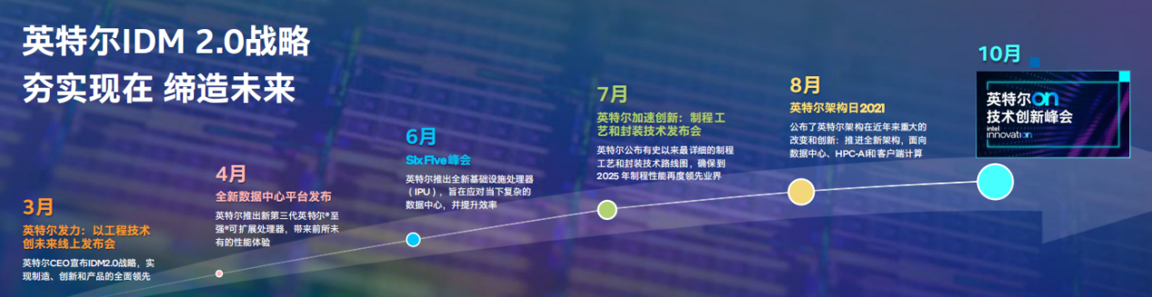 3月英特爾宣布了IDM 2.0戰(zhàn)略;4月,全新的數(shù)據(jù)中心平臺發(fā)布,英特爾第三代至強(qiáng)可擴(kuò)展處理器發(fā)布;6月,在Six Five峰會上,英特爾又推出了全新基礎(chǔ)設(shè)施處理器(IPU),該處理器是應(yīng)對當(dāng)下復(fù)雜的數(shù)據(jù)中心,提高效率的一個重大突破;7月,英特爾又公布了有史以來最詳細(xì)的制程工藝和封裝技術(shù)路線圖;8月,英特爾架構(gòu)日消息,英特爾推出兩大x86 CPU內(nèi)核,兩大數(shù)據(jù)中心SoC,兩款獨(dú)立GPU,以及變革性的客戶端多核性能混合架構(gòu);本月,英特爾On技術(shù)創(chuàng)新峰會,英特爾又帶來了更多的創(chuàng)新與突破。