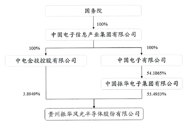 根據(jù)公示文件資料,截至報(bào)告簽署日消息,中國(guó)振華電子集團(tuán)有限公司直接持有振華風(fēng)光53.49%股權(quán),為振華風(fēng)光半導(dǎo)體的控股股東。中國(guó)電子信息產(chǎn)業(yè)集團(tuán)有限公司(國(guó)務(wù)院持股100%)為振華風(fēng)光半導(dǎo)體實(shí)際控制人。