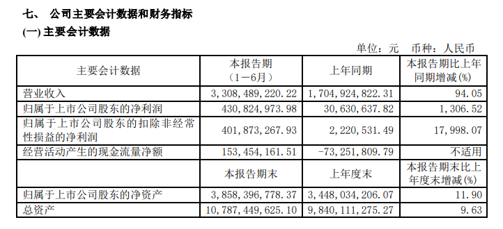 SemiW半導(dǎo)體世界2021年8月16日消息,士蘭微發(fā)布其2021年上半年業(yè)績報告。報告顯示,2021年上半年,士蘭微營業(yè)總收入為 33.08億元,同比增長94.05%;歸屬于母公司股東的凈利潤為4.31億元,同比增長1306.52%。