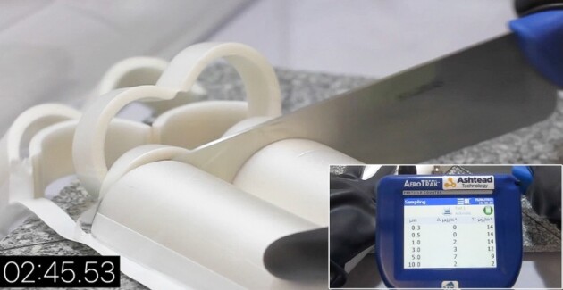 測試復制了最壞的情況,即操作人員在潔凈室中切割以及切斷隔熱材料的情況,模擬在安裝和更換維護期間按尺寸切割的操作。