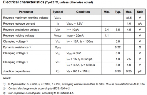 ESD73411Z電性參數(shù)