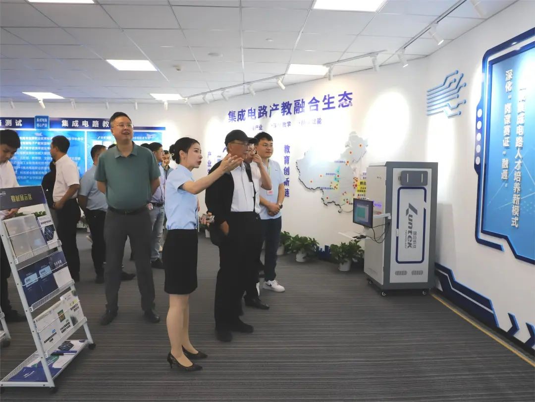 來訪人員先后參觀了企業(yè)展廳和芯片測試車間,陪同人員從公司的發(fā)展歷程、整體布局、未來規(guī)劃和人才需求等方面作了介紹。