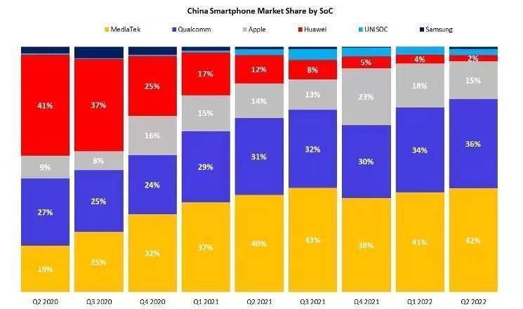 同時(shí)長(zhǎng)期成為中國(guó)智能手機(jī)SoC市場(chǎng)份額第一