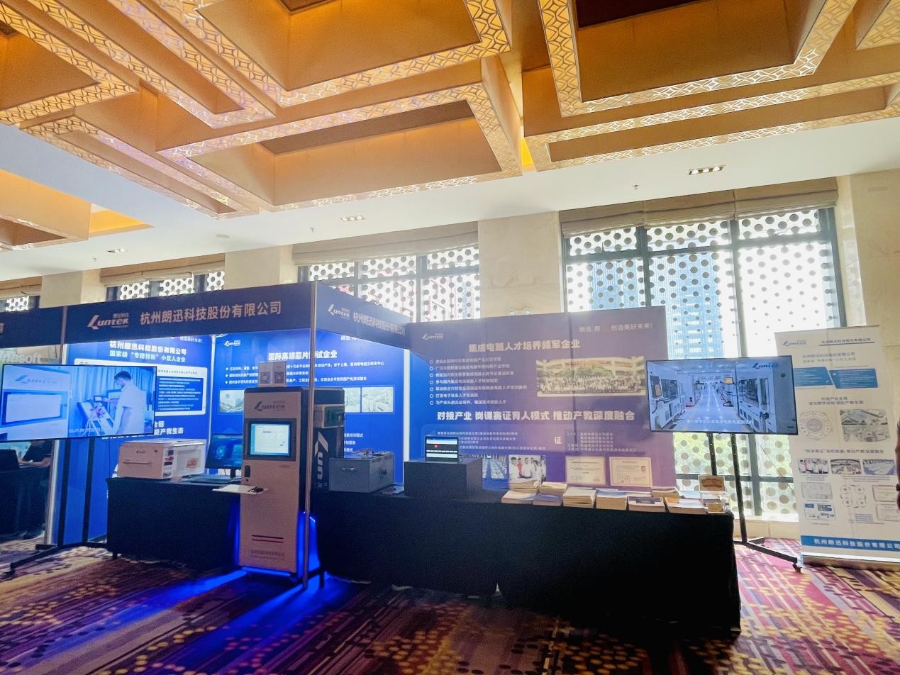 會(huì)議同期朗迅科技受邀參加職業(yè)教育綜合育人實(shí)踐及基地建設(shè)成果展示,攜先進(jìn)測(cè)試裝備教學(xué)系統(tǒng)、集成電路封裝虛擬仿真實(shí)訓(xùn)系統(tǒng)、在線可重構(gòu)集成電路教學(xué)實(shí)訓(xùn)系統(tǒng)(芯云派)、模擬原型仿真教學(xué)系統(tǒng)等新品產(chǎn)品精彩亮相,吸引眾多參會(huì)嘉賓在朗迅微型IC產(chǎn)教互動(dòng)體驗(yàn)中心駐足。