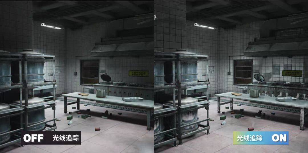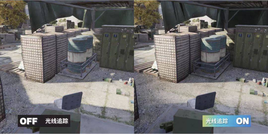 在《暗區(qū)突圍》游戲中的實(shí)際應(yīng)用上,在游戲環(huán)境的陰影效果方面,  室外的光線追蹤陰影能夠模擬真實(shí)的太陽光陰影形態(tài),近處的陰影銳利,遠(yuǎn)處的陰影柔和?;诠饩€追蹤的環(huán)境光遮蔽,能夠體現(xiàn)出相交物體間的漫反射光線遮擋效果,進(jìn)而強(qiáng)調(diào)出物體間的擺放關(guān)系,讓畫面更有層次感。相較于傳統(tǒng)的環(huán)境光遮蔽技術(shù),基于光線追蹤的環(huán)境光遮蔽,由于可以獲取到準(zhǔn)確的場(chǎng)景信息,其能夠更加精準(zhǔn)地體現(xiàn)物體間的環(huán)境光遮蔽關(guān)系,避免傳統(tǒng)技術(shù)中的黑暈等現(xiàn)象出現(xiàn)。更好的優(yōu)化了玩家在游戲地圖中的真實(shí)體驗(yàn)感。以高度還原自然光的品質(zhì)為玩家提供更身臨其境的戰(zhàn)局感。