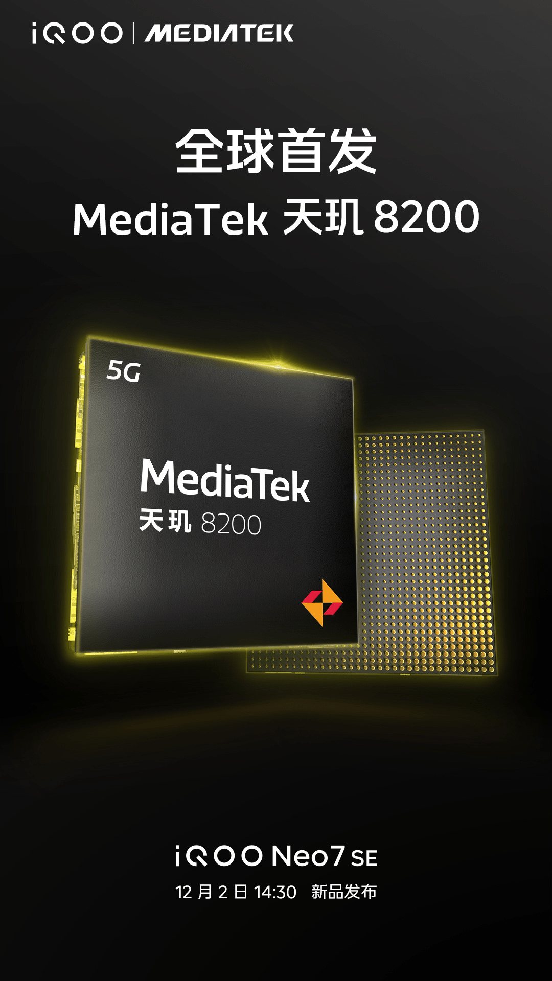 聯(lián)發(fā)科8100的“神U”表現(xiàn)一直備受網(wǎng)友們好評,如今8000系列即將迎來新成員。聯(lián)發(fā)科官方發(fā)布預(yù)告,“神U”二代——天璣8200將于12月1日正式發(fā)布,并且該芯片將全球首發(fā)搭載在iQOO Neo 7 SE上,希望8000系列二代終端能再續(xù)“神U”輝煌。