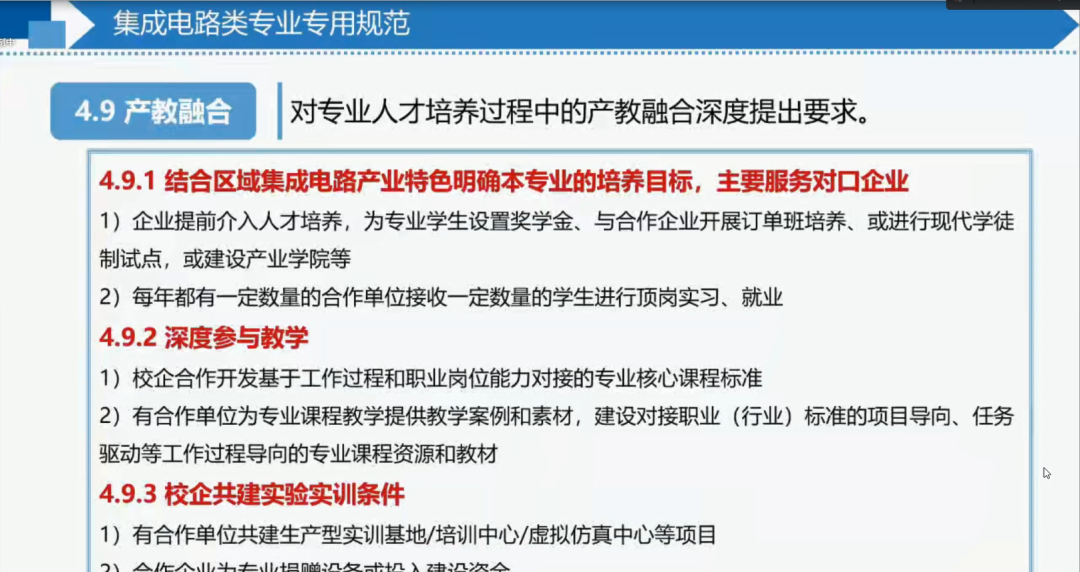 江蘇信息職業(yè)技術(shù)學院微電子技術(shù)專業(yè)負責人黃瑋講解了高等職業(yè)教育集成電路專業(yè)論證專用標準建設(shè),表示江蘇信息職業(yè)技術(shù)學院堅持推動集成電路專業(yè)建設(shè)與產(chǎn)業(yè)企業(yè)的深度融合,為集成電路產(chǎn)業(yè)培養(yǎng)更多高素質(zhì)、高匹配度的優(yōu)秀技術(shù)技能人才。