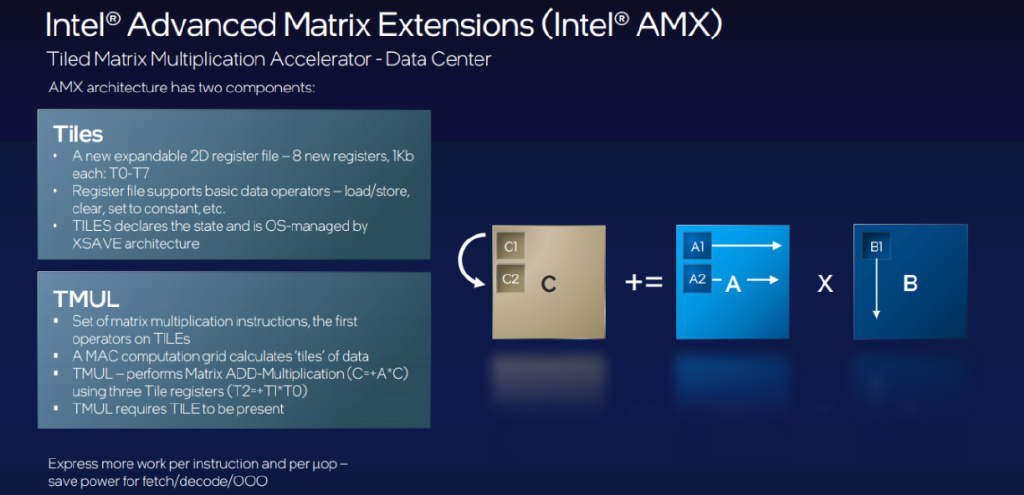 今天,代號為「Sapphire Rapids」的第四代至強(qiáng)可擴(kuò)展處理器也在中國迎來發(fā)布首秀,除了一系列微架構(gòu)的革新和技術(shù)規(guī)格的升級外,新 CPU 對 AI 運(yùn)算「更上層樓」的支持也格外引人關(guān)注,其背后的技術(shù)助力,也是英特爾在這代產(chǎn)品中增添的全新內(nèi)置 AI 加速器 —— 英特爾高級矩陣擴(kuò)展(AMX)技術(shù)自然也成為了焦點(diǎn)。