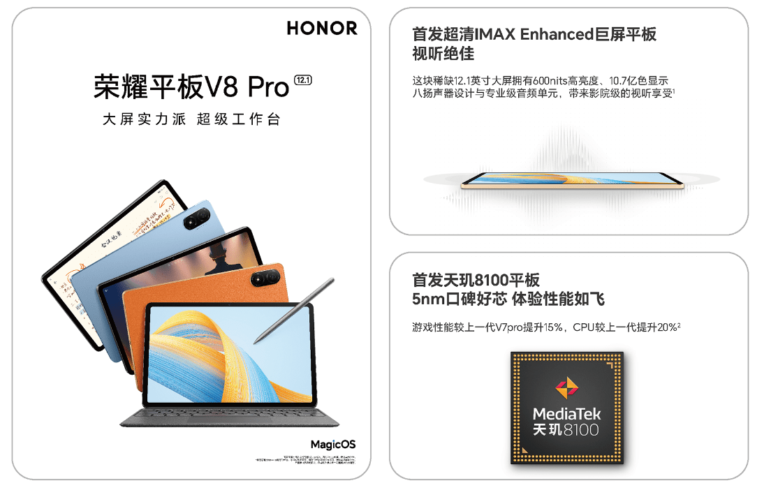 最近,聯(lián)想拯救者Y900和OPPO Pad 2正式發(fā)布,都不約而同搭載聯(lián)發(fā)科天璣9000旗艦芯片,性能強(qiáng)悍到在平板電腦市場中“大殺特殺”。稍早些發(fā)布的榮耀平板V8 Pro,則是搭載天璣8100芯片。天璣9000系列和天璣8000系列大家都熟悉了,性能強(qiáng)、能效穩(wěn)在手機(jī)圈是出了名的。因此,這幾款用天璣芯片打造的高端平板都是個頂個的“香”。