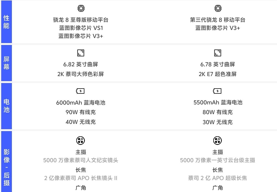 vivo X200 Ultra搭載驍龍 8 至尊版移動平臺,該款手機主打影像功能,分別搭載蔡司85mm長焦鏡頭、35mm主攝以及14mm超廣角鏡頭,全鏡頭支持光學(xué)防抖,并可外接一枚200mm F2.3長焦增距鏡。